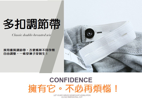 ●貼心多扣調節帶設計,可隨著孕期調整腰圍