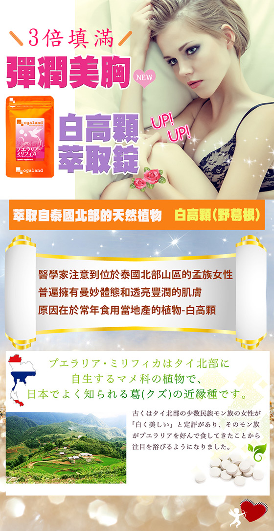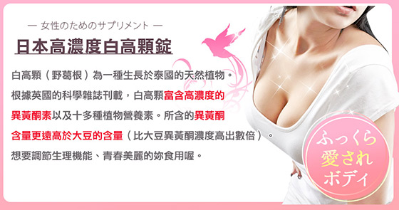 白高顆(野葛根)為一種生長於泰國的天然植物。根據英國的科學雜誌刊載,白高顆在富含高濃度的異黃酮素以及十多種植物營養素。