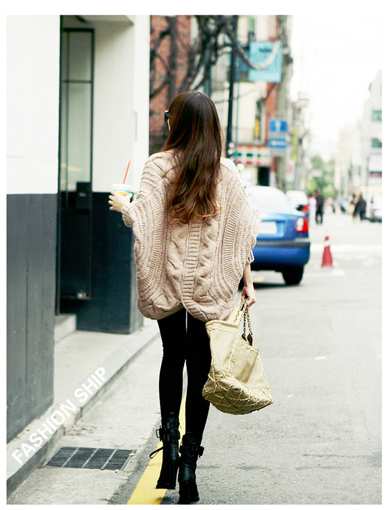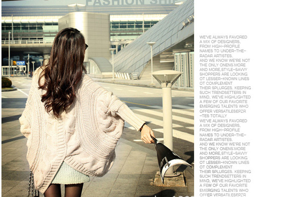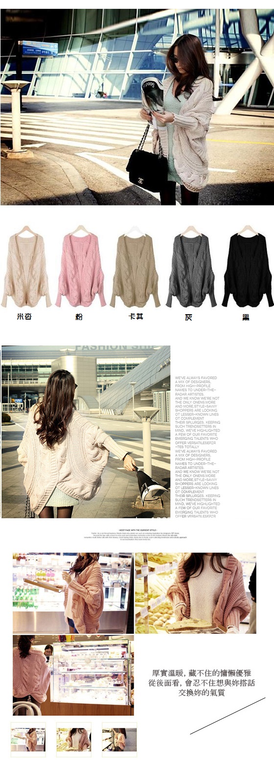 冷天氣購物的幫手!韓版麻花款蝙蝠袖粗針織外套"網路購物