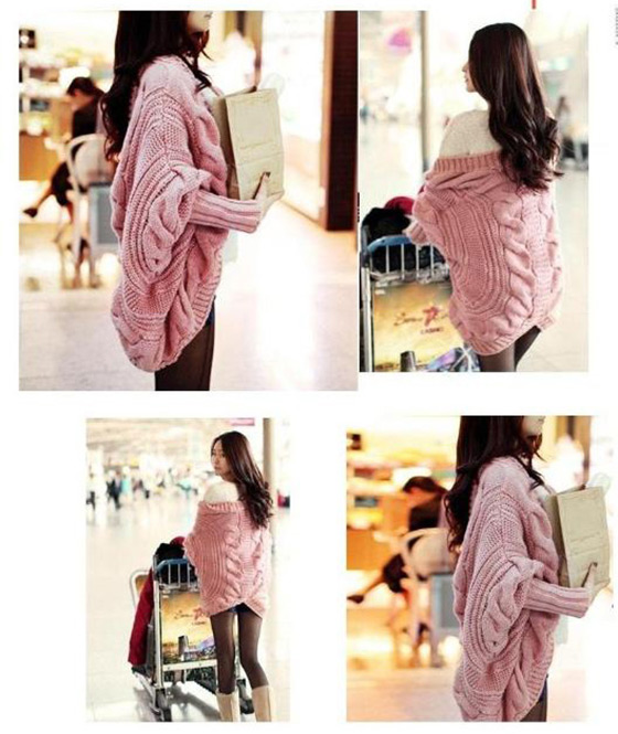 等著東西送上門韓版麻花款蝙蝠袖粗針織外套"