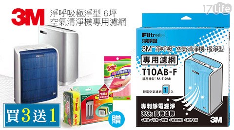 尾牙年終禮物首選 17life 過年的新年禮物 家電3c產品比價看看 甜點照樣吃3M-淨呼吸極淨型6坪空氣清淨機FA-T10AB專用濾網(T10AB-F)